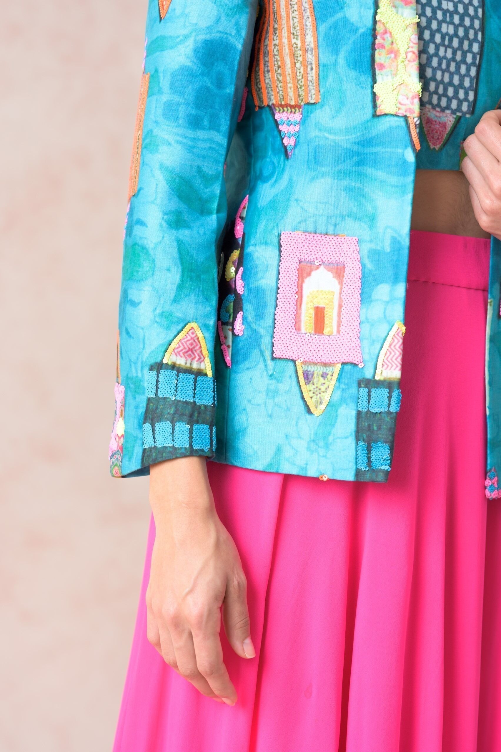 | Embroidery | Intricate hand embroidery on chanderi silk jacket |