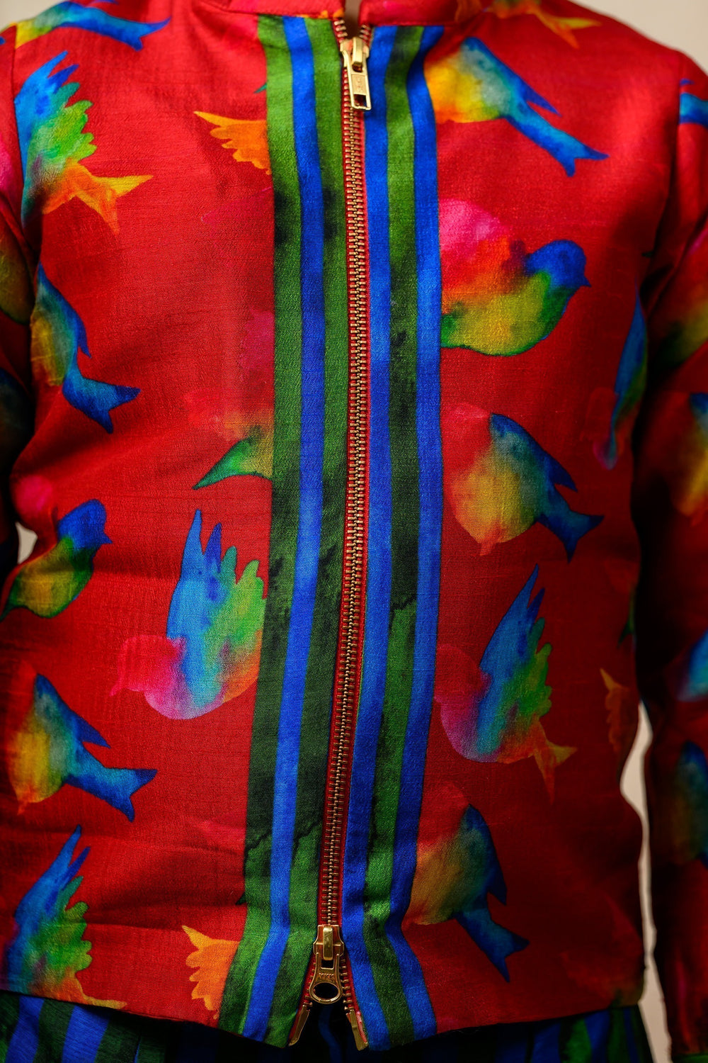 Beautiful birds printed with blue green watercolor effect (copyright print) Shacket with double zipper